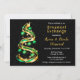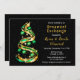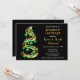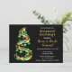 Este convite para troca de ornamentos elegante e chic de férias apresenta uma fita verde e dourada árvore de Natal com baubles. O texto combina o script manuscrito e as fontes sans serif modernas para um aspecto elegante e sofisticado. A neve caindo, a brilha e as faíscas dão um toque festivo e mágico.
