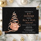 Este convite para troca de presentes elegante e chic de feriado apresenta uma fita rosa dourada árvore de Natal com um presente. O texto combina o script manuscrito e as fontes sans serif modernas para um aspecto elegante e sofisticado. A neve caindo, a brilha e as faíscas dão um toque festivo e mágico.