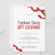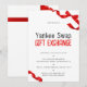 Feito à semelhança de um presente, o convite para a troca de presentes ostenta um design minimalista complementado por um vibrante arco vermelho. Isto não só acentua o tema da bolsa de troca de presente Yankee Swap. Ao mesmo tempo, cada convite é como um presente que se conecta. Adaptado para várias festividades como Yankee Swap, Papais noeis sujos e festas de elefantes brancos.