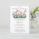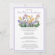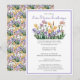 Personalize este convite de troca de flores com seu texto. Escolha uma fonte e a cor do texto que complementem seu evento de jardim. Este convite apresenta uma ilustração em aquarela de flores de Íris roxas, amarelas e rosadas