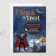 Adicione uma diversão espetacular ao seu evento de Halloween com o nosso convite de Tronco ou Tratar divertido e totalmente personalizável! Apresentando um Drácula caprichosa num cemitério, com uma grande teia aranha, morcegos, e um belo caminhão, todos colocados contra um pano de fundo noturno. A inscrição branca e laranja adiciona um toque festivo, capturando perfeitamente o tronco ou o espírito de tratamento. Ideal para crianças e adultos, este convite é perfeito para eventos de igreja, reuniões de comunidades, festividades de vizinhança e muito mais