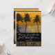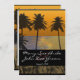 Encalhe convites tropicais do casamento caracterizam um esquema do por do sol em um paraíso tropical. O oceano descreve reflexões do por do sol. Convida igualmente palmeiras da característica e a areia gloriosa para um elegante convida para convidados wedding. Personalize o texto, as pias batismais e as cores à sua escolha, se você prefere.