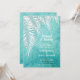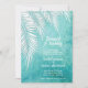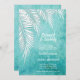 Frentes de palma brancas em um fundo azul-aquarela azul-turquesa oceânica destacam esses convites para chás de casamento brunch e casais borbulhantes. CORRESPONDENDO a itens na nossa loja.