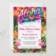 Tropical Aloha Baby Shower Luau Invitation - Features tropical "Aloha" with colorful hibiscus flowers, fun flamingos, and personalized with your information. Perfect for celebrating the coming arrival!