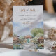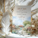 Anuncie seu casamento no paraíso com este belo cartão "Salve a Data" mostrando a serena AYANA Resort em Bali. A design da frente apresenta a arquitetura tradicional balinesa rodeada por verdes e jardins tropicais exuberantes, todos renderizados em aquarelas suaves com tons de terra, terracota e verdes gentis. As costas captam uma visão tranquila da paisagem serena de AYANA, completa com os tradicionais pavilões e detalhes intrincados, criando um ambiente tropical pacífico. Este cartão elegante é perfeito para um casamento de destino, capturando a essência da beleza e do charme de Bali, convidando convidados para uma celebração memorável.