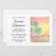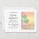 Convite de festas tropical de verão, com um pôr do sol de praia e uma inscrição personalizável. Você também pode substituir a imagem por sua própria. Excelente para planejar sua festa familiar ou celebração de churrasco.