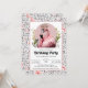 Este convite de aniversário tropical único apresenta um flamingo branco, cor-de-rosa, vestido com uma capa esfregada vestindo uma coroa joalhada. Ao redor de flores e estátuas históricas, o design é enquadrado em um padrão floral rosa e elegante bege. Personalize o modelo de texto fácil de usar com os detalhes do seu partido para uma celebração memorável. Este convite está disponível tanto como um convite impresso como como como um download digital.