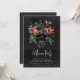 Um convite para festas de Dia das Bruxas, chique assustadora, com uma ilustração do crânio floral tropical, tocada com flores laranja e peludas e folhagem verde da selva, num fundo preto enfumaçado. Personalize este convite exclusivo e elegante para a festa do Dia das Bruxas com os detalhes do seu evento em caracteres não brancos. A redação mostrada para uma festa do Dia das Bruxas com uma linha extra de texto personalizado na parte inferior para compartilhar detalhes adicionais.