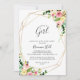 Este tropical de ouro geométrico é um convite de chá de fraldas feminino é perfeito para um simples chá de fraldas ou borrifo. A design apresenta cor-de-água rosa, esbranquiçada, amarela, azul e branca, que cai em pedras com folhas verdes botânicas, enfeitando uma moldura geométrica.