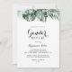 Este convite de festas verde tropical branco floral revela que é perfeito para um gênero de bebê rústico. A design apresenta palmeiras verdes folhas buquês com flores brancas adoráveis.