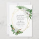 Folhas tropicais de cor-d-água e convite para casamento de magnólias brancas com moldura geométrica dourada. Ideal para qualquer tema ou casamento de jardim. O código QR no verso direciona para o seu local de casamento onde o pessoas pode aprender mais e rsvp.