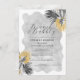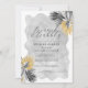 O brunch de palma tropical elegante e chique e o convite à espuma apresentam arranjos sofisticados de folhas de palma desenhadas de linha preta e folhagem texturizada de ouro em torno de uma estrutura aquosa moderna. Brunch & bubble é escrito em um script moderno e aberto. Uma lavagem aquosa de cinza macia e romântica puxa a design na frente e atrás. Muito fácil de personalizar. Este item faz parte da coleção Elegante de Palma Tropical. A estética do eterno torna isso apropriado para qualquer época do ano.