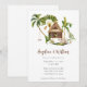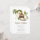 Tropical palm tree botanical wedding design featuring a beach bungalow with lush greenery. Perfect for destination, garden, or beach celebrations. Modern script style adds a relaxed, elegant feel for couples planning a tropical wedding.