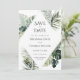 Anuncie sua data de casamento com este cartão de data inspirado no tropical. Com folhas verdes vibrantes e uma design botânica exuberante, é perfeito para dar o tom para um casamento de destino ou praia. Personalize com sua data de casamento e detalhes para uma primeira impressão memorável.