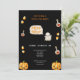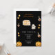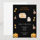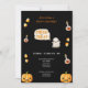 NEGRO E LARANJA TRICK OU TRATAR CONVITE DE HALLOWEEN Este convite de Halloween bonito apresenta um fundo preto cheio de milho doce. As palavras "Trick or Treat" são escritas de forma divertida e festiva. É a maneira perfeita de convidar os filhos de seus amigos para uma festa de Halloween macabra.