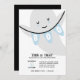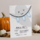 Os convites para as festas do Dia das Bruxas das Crianças Adoráveis são perfeitos para as crianças, a cesta do Dia das Bruxas, o truque da vizinhança ou os eventos de tratamento, as festas de fantasias e as celebrações do Dia das Bruxas! O design gráfico apresenta uma ilustração fantasma de aquarela sorridente segurando bandeiras de bunting com a palavra "BOO". Personalize com os detalhes de sua festa embaixo em letras negras e azuis. NOTA: TODAS AS CORES SÃO EDITÁVEIS