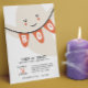 Os convites para as festas do Dia das Bruxas das Crianças Adoráveis são perfeitos para as crianças, a cesta do Dia das Bruxas, o truque da vizinhança ou os eventos de tratamento, as festas de fantasias e as celebrações do Dia das Bruxas! O design gráfico apresenta uma ilustração fantasma de aquarela sorridente segurando bandeiras de bunting com a palavra "BOO". Personalize com os detalhes do seu partido em letras negras e laranja.