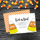 Prepare-se para uma festa de Halloween spooktacular convidando com um design de milho doce bonito e engraçado com listras de laranja lúcidas! Este convite para temas ou truques mostra um roteiro de caligrafia na moda e tipografia de tendências, fazer perfeito para um evento único e criativo de outubro. Projetado para festas de outono imícas, combina uma simples design minimalista com uma encantadora ilustração de desenho animado. Ideal para todas as idades, este convite é uma obrigação para a sua comemoração de Halloween!