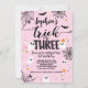 Truque ou Três aniversário de 3 anos, Convite para Dia das Bruxas Rosa