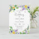 Este é um convite de casamento temido de flor silvestre boho rústica. A design apresenta uma variedade de flores silvestres de Verão primavera, incluindo os daffodils amarelos, as pinceladas, os trevos, as lavandas, os adoçantes, os dandelões, a samambaia e a viticultura verde. Entre em contato com o designer para obter outros itens correspondentes ou quaisquer variações solicitadas deste produto.
