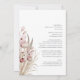 Convite de Casamento Monograma com Palma Seca Boho em Rosa e Dourado Rosa... Uma disposição artística de folha de palmeira seca com eucalipto em rosa poeirento e dourado rosa atrai o olhar para o texto do convite e as iniciais do monograma do noivo e da noiva. O verso do convite contém todos os detalhes que você normalmente veria em cartões separados no pacote de casamento, incluindo horário e local da recepção, opções de hospedagem, site do casamento, informações de RSVP e lista de presentes. Este convite de casamento de estilo moderno foi projetado para ser elegante e econômico... sem mencionar que economiza tempo. Todo o texto de exemplo pode ser facilmente revisado com suas próprias informações no modelo de personalização.