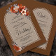 Convide seus amigos e entes queridos para o seu casamento com este moderno convite para casamento de beige floral laranja queimado e arco de terracotta. Projetado para o casal econômico, este convite inclui as informações de recepção, os detalhes da solicitação de RSVP e quaisquer outras informações que você queira ter no verso do convite, salvando o custo de compra de cartazes extras e artigos de papelaria.