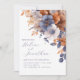 Crie uma suíte de casamento única com este na moda All In One Floral Elegant Blue Rust Wedding Invitation. Projetado com uma espantosa paleta azul empoeirada e crosta, este convite dá o tom para uma celebração chic e moderna. Os detalhes florais elegantes trazem um toque de romance, enquanto o design tudo em um permite que você adicione facilmente informações importantes sobre o casamento, como detalhes de recepção, acomodações e muito mais. Perfeito para casais que querem dinamizar a papelaria do casamento sem sacrificar o estilo. Este cartão de casamento de eterno oferece beleza e comodidade, fazer que seja algo incontornável para o seu grande dia. Personalize sua suíte hoje e uau seus hóspedes!