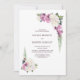 Convide seus amigos e entes queridos para o seu casamento para testemunhar e celebrar o início de sua jornada ao longo da vida com este elegante convite floral rosa e branco. O texto personalizável permite adicionar sem esforço seus nomes, data de casamento e os detalhes necessários de sua celebração. Projetado para o casal econômico, a localização do local de recepção, a solicitação de resposta RSVP, os detalhes de acomodação e qualquer outra informação que seus convidados possam exigir podem ser incluídos no verso deste convite, economizando dinheiro em papelaria extra. Vários tipos de papel e estilos de canto estão disponíveis para seus convites exclusivos, juntamente com a opção de download.