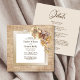 Convide seus amigos e entes queridos para o seu casamento para testemunhar e celebrar o início de sua jornada ao longo da vida com este convite floral rústico. O texto personalizável permite adicionar sem esforço seus nomes, data de casamento e os detalhes necessários de sua celebração. Projetado para o casal econômico, a localização do local de recepção, a solicitação de resposta RSVP, os detalhes de acomodação e qualquer outra informação que seus convidados possam exigir podem ser incluídos no verso deste convite, economizando dinheiro em papelaria extra. Vários tipos de papel e estilos de canto estão disponíveis para seus convites exclusivos, juntamente com a opção de download.