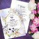 Crie o seu convite perfeito para o casamento com este convite floral roxo, com formato geométrico, tudo em um ouro. Projetado para o casal econômico, este convite inclui as informações de recepção, os detalhes da solicitação de RSVP e quaisquer outras informações que você queira incluir no verso do convite, salvando o custo de compra de cartazes extras e artigos de papelaria.