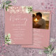 Este elegante e empoeirado rosa floral verde corda luminoso pode ser personalizado com suas informações em tipografia gráfica com todas as suas informações especiais sobre fotos e dia de casamento no verso, incluindo seu RSVP, acomodação e detalhes adicionais. Projetado por Thisnotme©