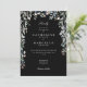 Um convite de casamento floral elegante de flores silvestres com tipografia branca-quic num fundo preto-na moda. Com todas as suas informações especiais sobre o dia do casamento, incluindo seu RSVP, acomodações e detalhes adicionais. Projetado por Thisnotme©