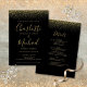 Convites Tudo Em Um Casamento Preto e Dourado com Brilho Ro