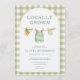 Convite de chá de bebê em um só conjunto em xadrez verde salvia rústico com um tema encantador de produtos locais. Projetado com um cartão-postal de RSVP destacável conveniente para respostas fáceis, criando uma experiência calorosa e acolhedora para os convidados. Perfeito para chás de bebê, celebrações de gênero neutro e outras festividades com um charme de casa de campo aconchegante. Ideal para reunir amigos e familiares em um ambiente relaxado e inspirado na natureza. Texto editável. Layout limpo e pronto para impressão.
