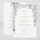 Um convite de casamento floral com flores silvestres em aquarela elegante e tipografia dourada chic. Com todas as informações especiais do seu casamento no verso, incluindo seu RSVP, acomodação e detalhes adicionais. Criado por Thisisnotme©