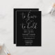 Este convite de casamento com letra elegante em preto e branco pode ser personalizado com todas as informações especiais do seu dia de casamento no verso, incluindo seu RSVP, acomodação e detalhes adicionais. Projetado por Thisisnotme