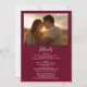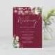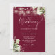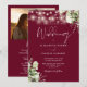 Este convite de casamento com iluminação de corda de verde floral burgundy pode ser personalizado com suas informações em tipografia elegante com toda a sua foto especial e informações do casamento no verso, incluindo RSVP, acomodação e detalhes adicionais. Criado por Thisisnotme©