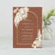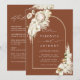 Este convite de casamento todo-o-em-um apresenta proteas de aquarela pintadas, orquídeas brancas, grama de pampas secas, antrúrios brancos com detalhes de casamento e código QR RSVP no verso. Para personalização mais avançada deste design, clique no link "personalizar mais". Itens correspondentes também estão disponíveis.