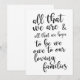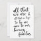 Um elegante sinal de casamento de ponta, apresenta o texto "Tudo o que somos e tudo o que esperamos ser devemos às nossas famílias amorosas" em uma fonte de roteiro extrovertida, a textura da pincelada adiciona um sentimento espontâneo e divertido. A cor do fundo pode ser personalizada de acordo com suas necessidades e preferências, por favor entre em contato comigo se você tiver alguma solicitação especial.