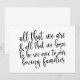 Um elegante sinal de casamento de ponta, apresenta o texto "Tudo o que somos & tudo o que esperamos ser devemos às nossas famílias amorosas" em uma fonte de letra cursiva extrovertida, a textura da pincelada adiciona um sentimento espontâneo e divertido. A cor do fundo pode ser personalizada de acordo com as suas necessidades e preferências, por favor entre em contato se tiver algum pedido especial.