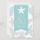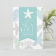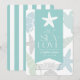 Este convite de chá de noiva chic costeiro "Tudo o que Vejo é Amor" apresenta uma fita azul turquesa clara, conchas, uma tartaruga marinha/honu e estrelas do mar em tons pastel azul e verde. O lado reverso apresenta um fundo branco com listras azul turquesa. Personalize-o para suas necessidades. Você pode encontrar produtos correspondentes na minha loja.