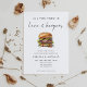Tudo que você precisa é Amor e Burgers: convite para chás temáticos de hambúrguer simples e moderno.