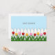 Tulipas alegres em frente a uma cerca de piquete branca é a maneira perfeita de convidar amigos e familiares para sua ocasião feliz. Personalize a frente e o verso deste cartão para fornecer todos os detalhes necessários para seus convidados.