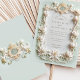 Crie uma primeira impressão inesquecível para o seu casamento com este sofisticado convite com tulipas brancas graciosas entrelaçadas com folhagem intrincada. O design é enquadrado com detalhes falsos de ouro e inspirados no barroco e colocado sobre um fundo verde macio, exuando elegância e romance do eterno. Este convite é ideal para casamentos formais ou inspirados em vintage. Observe que os acentos de ouro fazem parte do design impresso e não incluem folhas metálicas reais nem texturas gravadas.