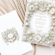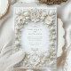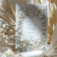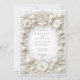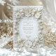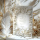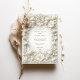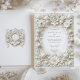 Celebre seu casamento em estilo com este refinado convite islâmico com tulipas brancas e folhagem intrincada. O design é enfeitado com um falso quadro floral barroco emboscado, exuando elegância eterno. O fundo branco cremoso e o delicado detalhamento criam uma aparência sofisticada e luxuosa, perfeita para casamentos formais ou comemorações românticas. Observe que os efeitos gravados fazem parte do design impresso e não incluem texturas realçadas.