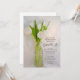 Celebrar com a noiva que estará antes de março, abril ou maio, nascendo o casamento com as bonito Tulipas Brancas no Primavera de Garrafa de Leite. Este elegante chá de casamento botânico personalizado apresenta uma fotografia floral de flores de tulipas brancas em uma garrafa de leite de vidro velha e um véu de brasa branco com fundo de cebola branca. Inpo perfeito ou ideia para um evento de festas de jardim clássico. Disponível como um convite impresso para envio por correio ou como um download digital para fácil compartilhamento digital online.