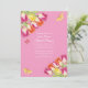 Tulipas editáveis e borboletas Convite para brunch. Design apresenta conjuntos vibrantes de tulipas cor-de-rosa, amarelas e laranja sobre fundo rosa. Borboletas cor-de-rosa e amarelas em torno das tulipas, melhorando a alegre estética com um toque caprichoso! O verso do convite é decorado com um padrão colorido de tulipas e borboletas. Personalize o texto e altere o estilo e a cor da fonte para se adequar.
