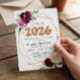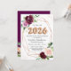 Convite de Festa de Formatura com Balões Rosa Floral Roxo e Dourado Rose.