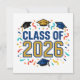 Celebre um marco digno de ser lembrado com este convite divertido para a festa de formatura da turma de 2026! Com um design moderno e festivo e uma tipografia em negrito, este convite define o tom para uma celebração alegre que homenageia o trabalho árduo e a conquista do formando. O design divertido e elegante captura a emoção da temporada de formatura e convida amigos e familiares a se reunirem para um evento memorável.