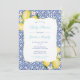Este Chá / Chá de panela / Qualquer convite para eventos combina limões de cor d'água pintados à mão e folhas verdes brilhantes com um fundo de azulejos antigos (azulejos azuis e brancos).